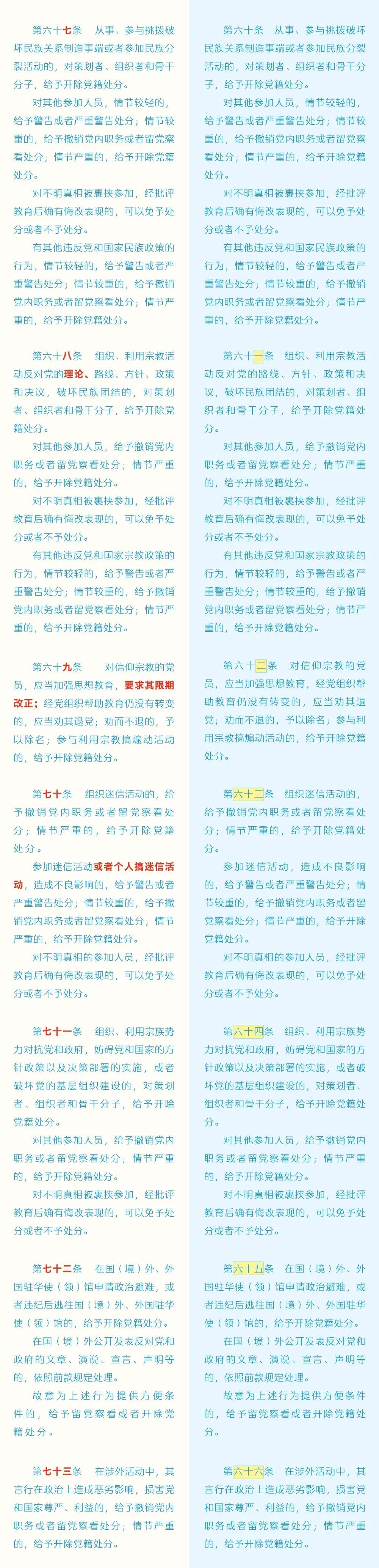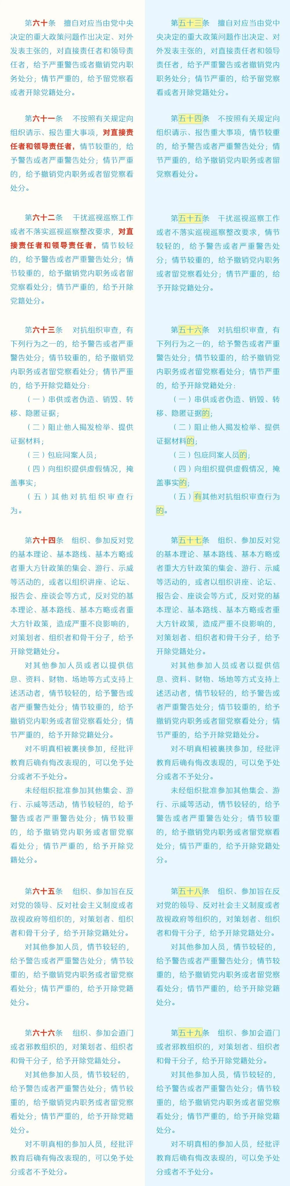近日,中共中央印發(fā)了修訂后的《中國(guó)共產(chǎn)黨紀(jì)律處分條例》(以下簡(jiǎn)稱《條例》),并發(fā)出通知,要求各地區(qū)各部門認(rèn)真遵照?qǐng)?zhí)行。為幫助大家更好學(xué)習(xí)理解,本文對(duì)《條例》已修訂內(nèi)容與原內(nèi)容進(jìn)行對(duì)照解讀。