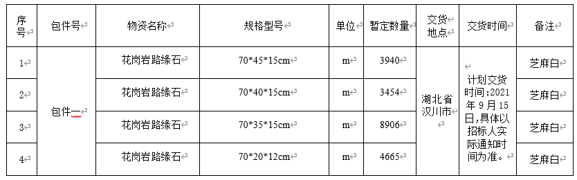 備 注:漢川項目花崗巖路緣石采購標(biāo)書費(fèi)用
