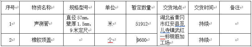 1.2 招標內容:本次聲測管采購招標內容詳見下表。