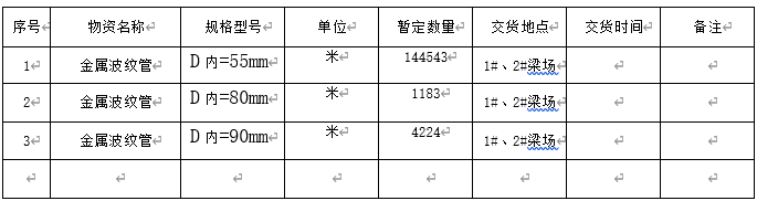 1.2 招標(biāo)內(nèi)容:本次波紋管采購(gòu)招標(biāo)內(nèi)容詳見(jiàn)下表。