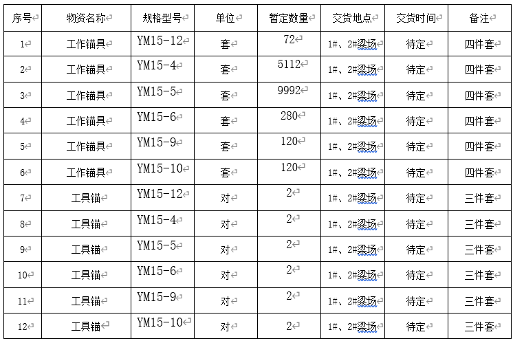 1.2 招標內容:本次錨具采購招標內容詳見下表。