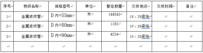 1.2 招標內容:本次波紋管采購招標內容詳見下表。