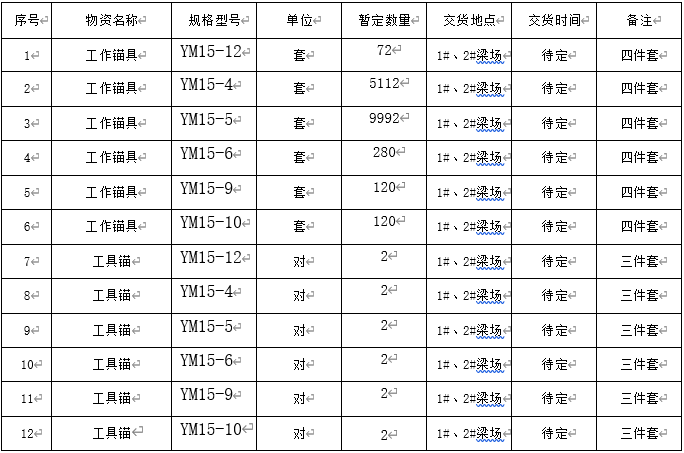 1.2 招標內(nèi)容:本次錨具采購招標內(nèi)容詳見下表。