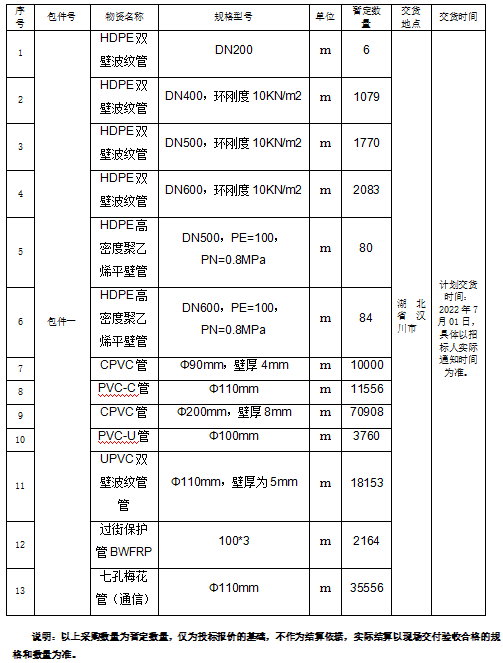 1.2 招標內(nèi)容:本次管材采購招標內(nèi)容詳見下表。